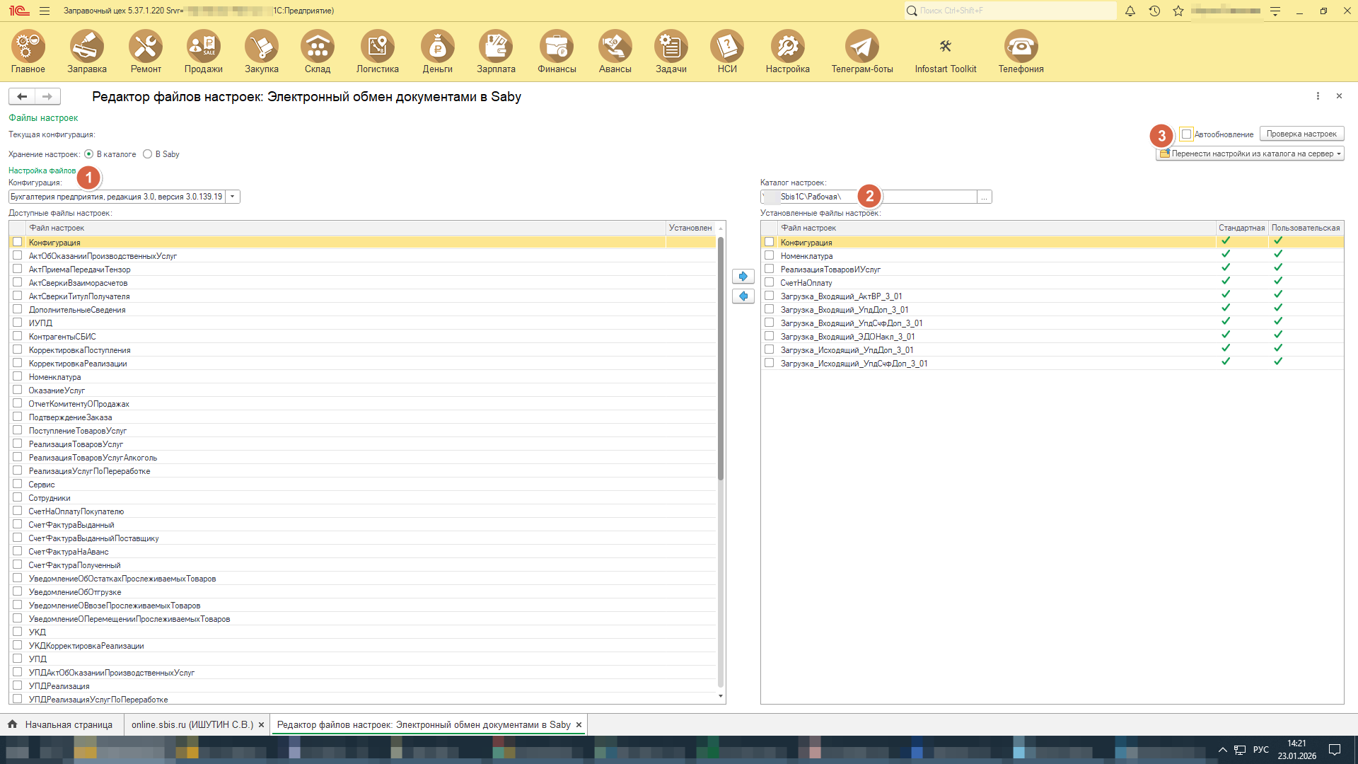 В программе поддерживается работа с ЭДО на базе обработки от компании Тензор (Сбис/Saby). Мы адаптировали её к нашей программе в ограниченном объёме, потому что ряд функциональных возможностей изначально мы не поддерживаем, например, прослеживаемость товаров.